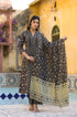 Elegant Pure Cotton Anarkali Dress Set with Dupatta & Pant Black