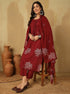Elegant Pure Cotton Anarkali Dress Set with Dupatta & Pant Red