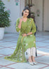 Elegant Pure Cotton Anarkali Dress with Dupatta & Palazzo Set Green