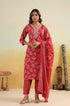 Elegant Pure Cotton Dress Set with Dupatta & Pant – Breathable & Stylish (Red)