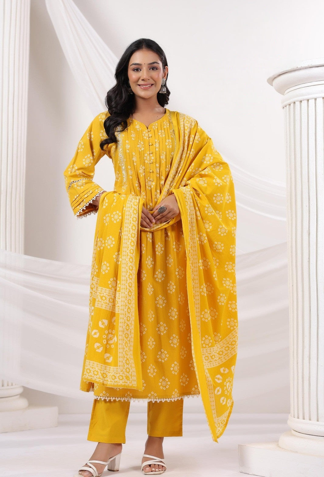 Elegant Pure Cotton Dress with Matching Dupatta Yellow
