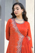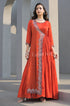 Make a striking statement in this orange drape gown, where tradition meets contemporary elegance. Designed to enhance effortless movement, this outfit features a beautifully pleated side drape that cascades gracefully, adding sophistication. The intricate handwork along the neckline and border creates a mesmerizing effect, perfect for festive occasions and wedding celebrations.