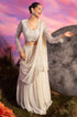 This exquisite Pearl Whimsy-Drape Set georgette fabric radiates elegance and charm. The intricately handworked blouse stands out with its detailed artistry, adding a touch of sophistication to the ensemble. The delicate feather accents on the sleeve edges bring a whimsical and contemporary flair, perfectly complementing the flowing draped silhouette. Ideal for weddings and festive celebrations, this outfit seamlessly blends timeless grace with modern details, making it a statement piece for any occasion.